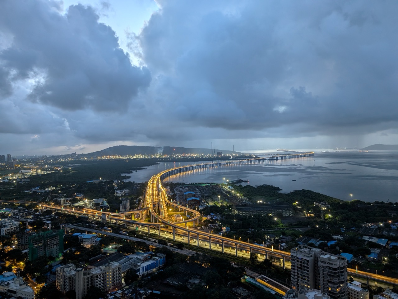 Atal Setu at NightSeptember 9, 2024📍 Atal Setu, MumbaiCoordinates: 18.9991855°N, 72.86192°E‹ View from Gardens by the Bay Dessert at Tresind ›